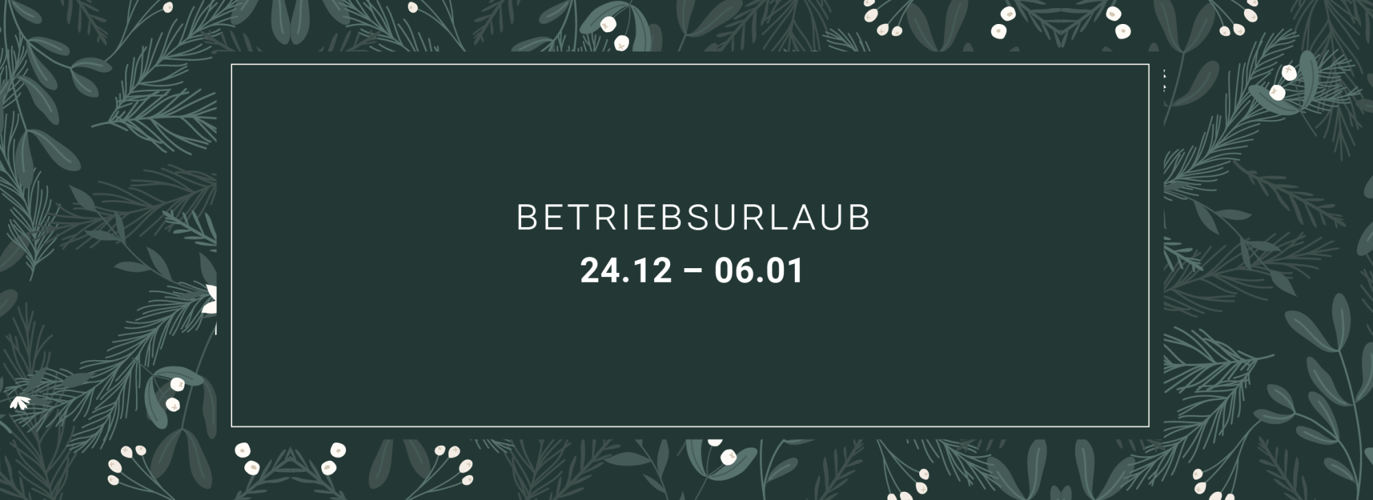 Bitte beachten Sie, dass wir uns vom 24.12.2025 bis einschließlich 06.01.2026 im Betriebsurlaub befinden.